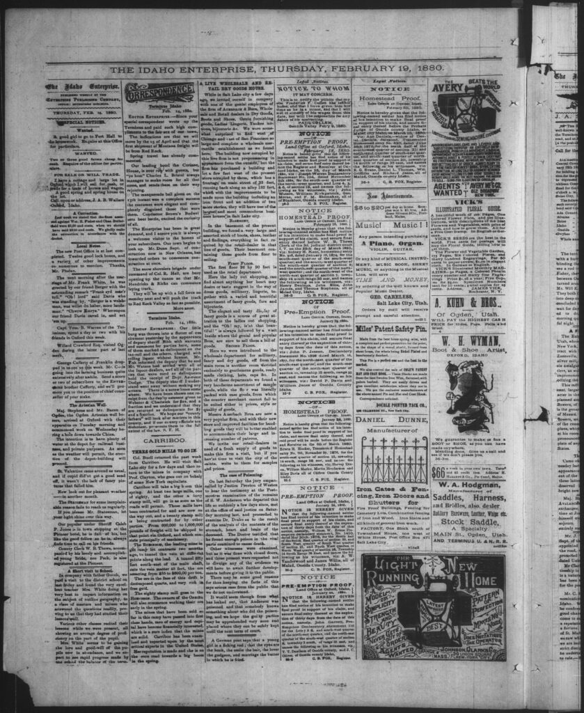 Idaho Enterprise – February 12, 1890