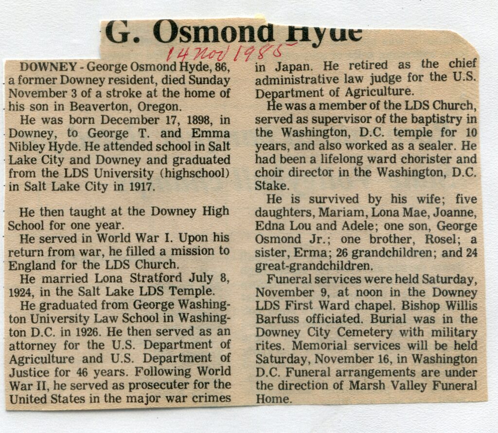 George Osmond Hyde, (1898)