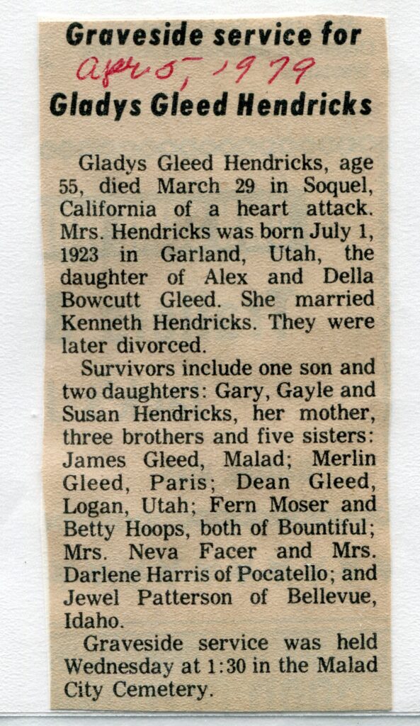 Gladys Gleed Hendricks, (1923)