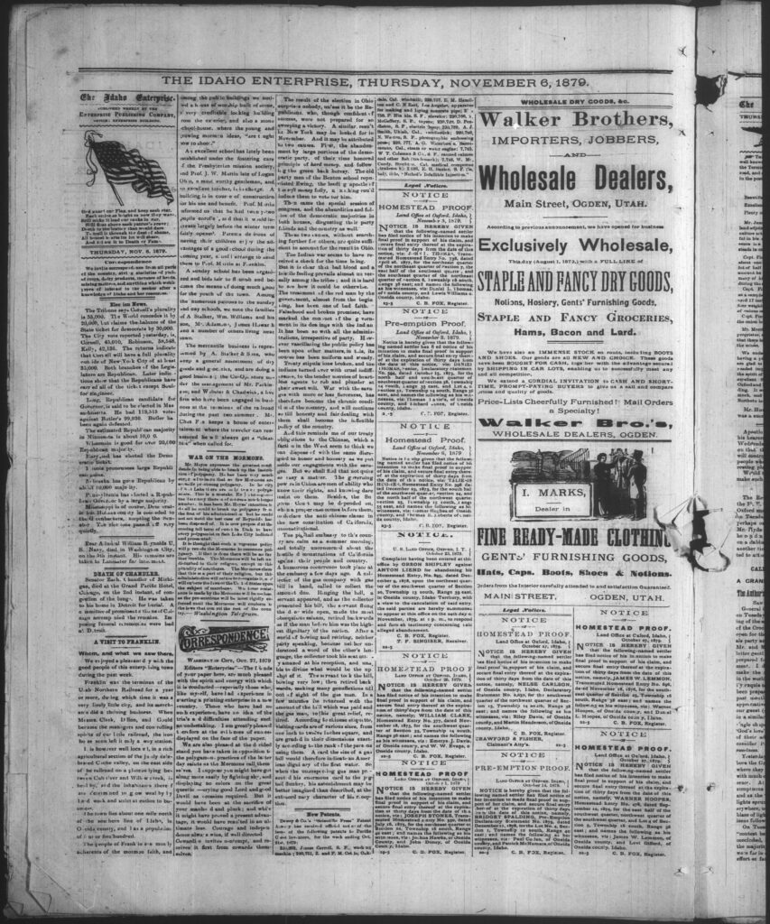 Idaho Enterprise – November 13, 1879