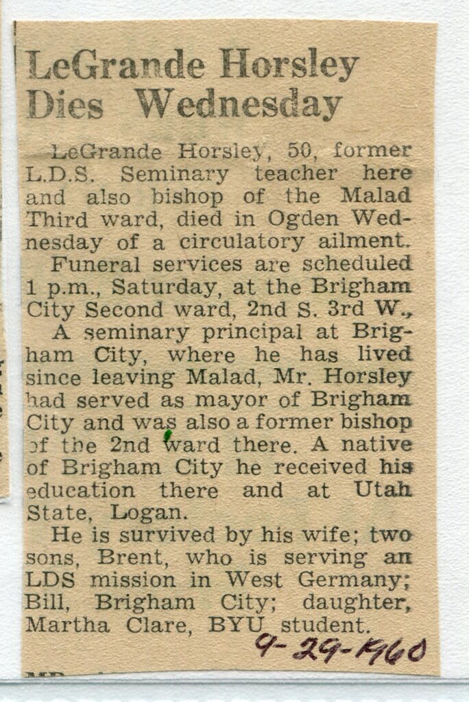 LeGrande Horsley, (d. 1960, age 50)