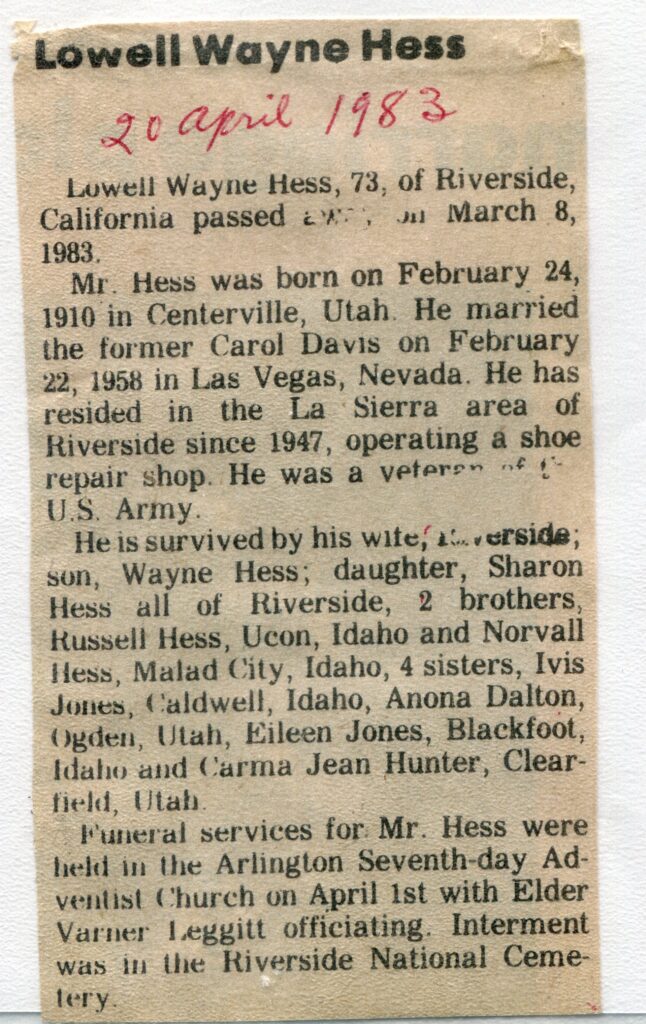 Lowell Wayne Hess, (1910)