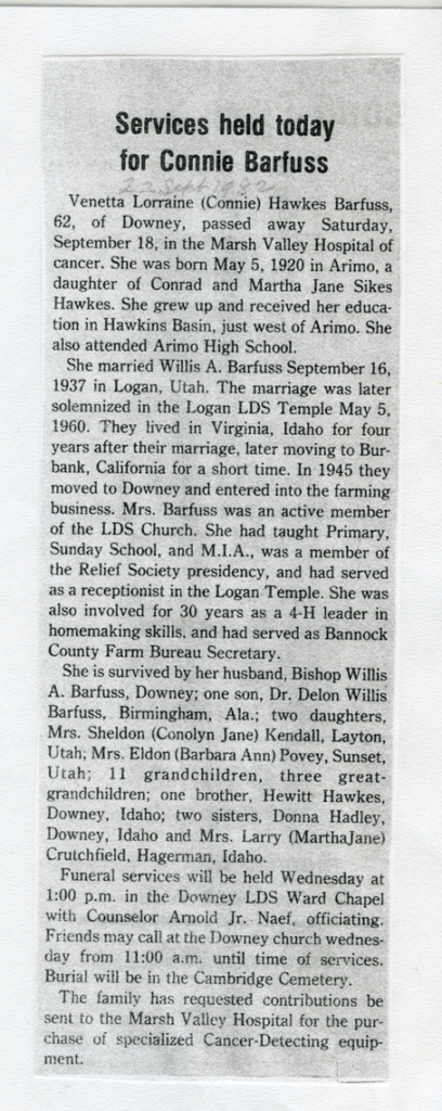 Venetta Lorraine (Connie) Hawkes Barfuss, (1920)