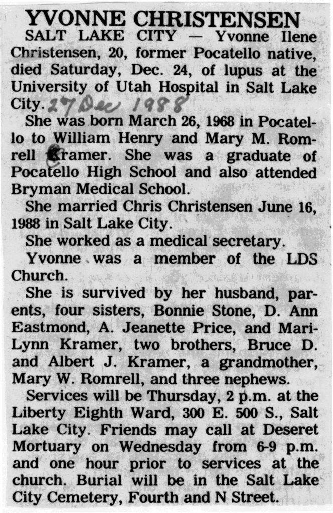Yvonne Ilene Christensen, (1968)